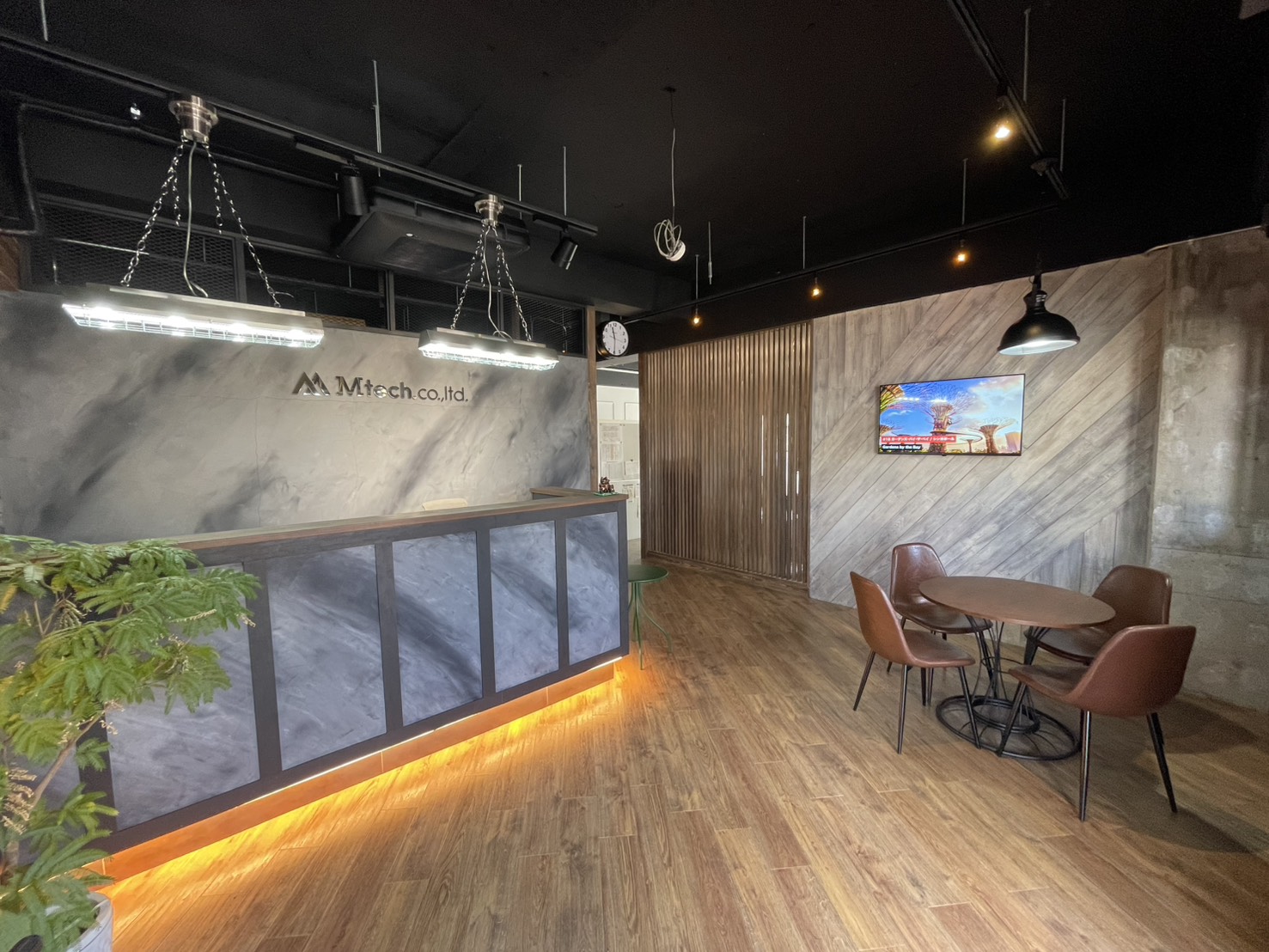 建築会社らしからぬホテルの様なエントランスにバーカウンターまで完備のオフィス