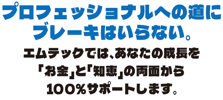 エムテックは本気で挑む人への投資を惜しみません。 ※費用負担の詳細は面接時にご説明します。