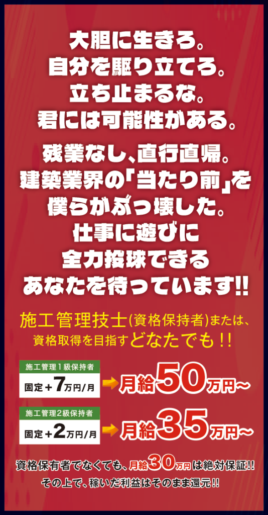 主軸メンバーとなり共に建築業界を盛り上げましょう!